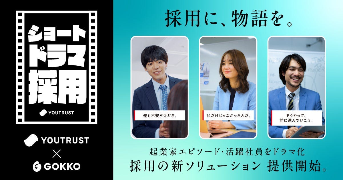 YOUTRUST×GOKKO、「ショートドラマ採用」を提供開始。コンセプトは『採用に、物語を。』